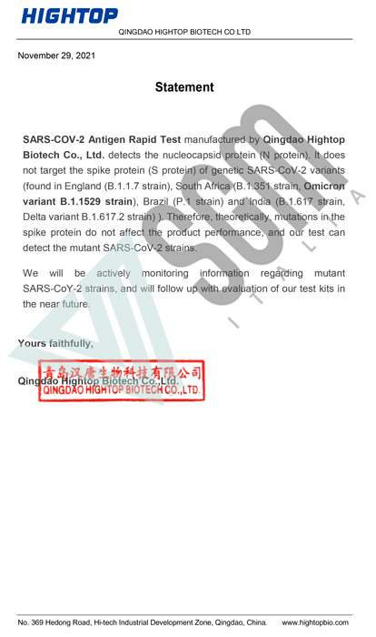 HighTop Test Rapido Antigenico SARS-CoV-2